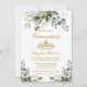 Moderne Elegant Aquarelle Botanique Verdure Mariage Quinceañera Invitation Card comprend des feuilles d'eucalyptus, vert feuillage botanique, feuilles bleu poussiéreux et d'autres belles plantes botaniques. Sage Green Back.