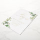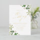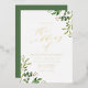 Elegant botanical wedding invitation featuring your wedding details displayed in gold foil lettering with painted watercolor foliage in vibrant shades of spring and moss green at the corners and a modern calligraphy font. The stylish botanical wedding invitations are perfect for spring and summer weddings.