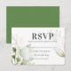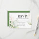 Elegant eucalyptus wedding response cards featuring a classic white background, a modern watercolor display of woodland green foliage, trendy gold floral accents, and a stylish rsvp template that is easy to personalize.