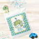 Get ready to roar with excitement! These charming favour bags are the perfect way to thank your guests for celebrating your little one. The design features a sweet watercolor illustration of a baby dinosaur hatching from its egg, surrounded by foliage, a charming bird, and a cute little blue dino car all on a light blue background with a subtle dino footprint pattern. The bag can be personalized with the mother's name and the date of the baby shower, making it a unique and memorable keepsake. Ideal for a boy's baby shower, these bags can be filled with treats, small toys, or party favours. The fold-over top is secured with a small clothespin (not included), adding a rustic and cute touch.