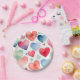 Pattern featuring a variety of watercolor hearts in different sizes and colours, including shades of red, pink, green, and blue, set against a soft white background. The hearts exhibit a fluid, artistic blend of colours with varying opacity and textures, creating a romantic and playful atmosphere. The arrangement is dynamic with overlapping and scattered hearts, giving it a lively and cheerful look.