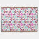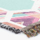 This pink and teal design features a geometric hexagon pattern.
