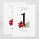 Theme Parties' holiday greenery table numbers design features hand-painted watercolor botanicals and a pretty red poinsettia. The modern simple design is set on a crisp white background and accented with matching gold speckles. #Christmas #Holidays #HolidayParty