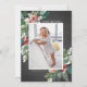 Send your loved ones Christmas cheer this season with this beautiful rustic Christmas photo flat card. It features watercolor hollies, faux gold foil accents, matching festive holiday pattern, faux chalkboard paper and modern typography. The texts are fully editable. Personalize this holly Christmas photo card by adding your photo, name and year.