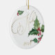 Watercolor Holly and Red Berries Ceramic Ornament