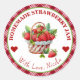 Watercolor red and green strawberries in a basket design with red classic plaid background