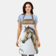 A beautiful watercolor painting of the head of a white horse with a grey mane that has soft blue and burnt orange wildlfowers with foliage around it set against a white background that has a brown top edge on which your name appears. These are ideal for horse lovers and anyone who is looking for unique gifts for their bridal party. Celebrate your country; western; Texas or rustic barn fall bbq or outdoor braai with these elegant aprons.
