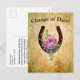 Do you need to reschedule your wedding? Using postcards is an affordable way to save on postage. This Change of Date postcard features a colourful spray of watercolor flowers that adorn a rustic horseshoe. The back can be personalized to fit your Change of Date needs.