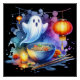 Watercolor of a ghost, noodles, candle, and lantern for the Hungry Ghost Festival.
