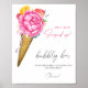 This ice cream-themed bridal shower is decorated with watercolor florals and an ice cream cone. The text says "She's been scooped up!" in stylish pink script typography. Watercolor ice cream with flowers and fruits.