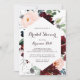 This watercolor illustrated calligraphy bridal shower invitation is perfect for a simple wedding shower. The design features artistic hand-painted watercolor navy blue, burgundy, red, blush roses and peonies with elegant green leaves, inspiring the colourful idyllic autumn beauty.