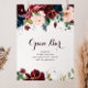 This watercolor illustrated fall wedding open bar sign is perfect for a simple wedding. The design features artistic hand-painted watercolor navy blue, burgundy, red, blush roses and peonies with elegant green leaves, inspiring the colourful idyllic autumn beauty.
