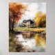 Poster Illustration aquarelle Paysage Automne Imprimer