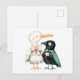 Watercolor Illustration of Seagull and Crow Postcard
