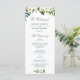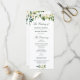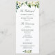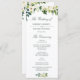 A lovely greenery floral design with ivory white flowers on white background. You can personalize the text and colours on this wedding program template.