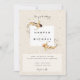 Modern wedding invitation featuring a pair of koi fish. The background is a Japanese inspired pattern, in light sunset colours.