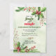 A green holly and pine branches form corner elements against a green watercolor wash background to invite friends and family to a Jingle and Mingle Christmas party. Can be customized for any holiday occasion including an office Christmas or holiday party, birthday party, cocktail party, housewarming or any festive holiday event. Available with matching products.