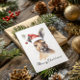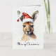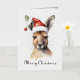 Celebrate a "down under" holiday with this stunning watercolor Christmas card featuring a gentle kangaroo wearing a bright red Santa hat. The artwork captures soft, feathery fur textures and delicate paint splatters, creating an artistic and soulful aesthetic against a crisp white background. This dapper marsupial is the perfect choice for animal lovers, Australian expats, or anyone wanting to send a "Merry Christmas" wish that feels both exotic and heartwarming.