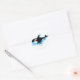 traditional watercolor design of a black and white orca or killer whale with blue water dripping from it on a sticker