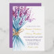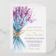 Delicate and elegant invitation features a beautiful watercolor illustration of a bouquet of lavender flowers.