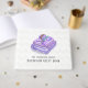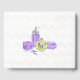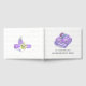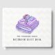 Personalized bathroom guest book featuring purple soap, lavender bouquet, towels and lavender oil with a subtle chevron background.