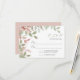 Watercolor Leaves Wedding Reply RSVP Card designed with clusters of leaves in soft shades of green and pink on a white background. The text includes: Your Reply By Date, along with space for guests to insert their names and check off their reply. The reverse side is matching soft pink background. To personalize, simply insert your Reply By Date into our template, replacing the sample text. Be sure to view the complete Watercolor Leaves Wedding Collection, for matching cards and accessories.