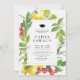 Let's celebrate the graduate! Invite guests to your event with this customizable graduation party invitation. It features watercolor lemons, cranberries, and greenery accents. Personalize it by adding names, dates, times, and other event details. This lemon-themed graduation party invitation is also available on other cardstock.