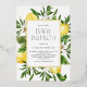 Invite guests to your event with this customizable baby brunch invitation. It features watercolor frame of lemons and lemon blossoms with modern typography. Personalize this gold foil baby brunch invitation by adding your details. This lemon baby brunch invitation is perfect for gender-neutral and summer baby showers.