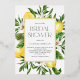 Invite guests to your event with this customizable bridal shower invitation. It features watercolor frame of lemons and lemon blossoms with modern typography. Personalize this gold foil bridal shower invitation by adding your details. This lemon bridal shower invitation is perfect for summer bridal showers.
