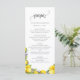 This beautiful wedding menu features bright lemons with lavender flowers and elegant script. You can customize the text on the invitation to suit your personal information. Back features yellow watercolor ombre.