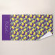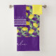 These towels showcase a classic and undeniably cute design, perfect for adding a touch of charm to any space. The chic lemon pattern is both refreshing and stylish, making these towels a delightful addition to your home. The background features a harmonious blend of purple and yellow hues, beautifully complementing the lemon motif on the towels. This set of towels is presented in an elegant style, further enhancing their overall appeal. Each towel set can also be personalized with a name, adding a unique and sophisticated touch to your bathroom decor. The design elements combined create a visually pleasing and practical set of towels for everyday use.