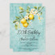 Elegant watercolor lemon-themed 100th birthday invitation with a floral illustration and a teal background. Personalize the text with the party details.