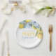 Elegant and Sweet Lemon White She's Found Her Main Squeeze Personalized Paper Plates. Customize with the bride-to-be's name. Featuring beautiful elegant dusty slate blue watercolor flowers and sweet yellow lemons.