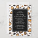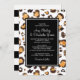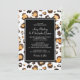 Wedding invitation featuring a hand-painted leopard print pattern in watercolors, chic black and white stripes, and elegant fonts.