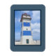 Nautical themed design with watercolor lighthouse decoration in dark blue frame. It is possible to change the background colour and to add different one to the design with your choice.