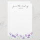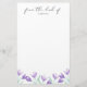 Pretty note paper featuring a beautiful bottom border of lilac watercolor flowers with green leaves, with "from the desk of" in black modern calligraphy style font, and personalized with your name. Why not buy a set as a gift for your mother, friend, or any other stationery addict?