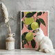 Lime lemons on pastel pink, this kitchen wall art print is sure to bring summer vibes to your home!