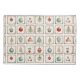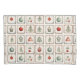 Cute watercolor line art, little squares filled with simple doodly Christmas, ornaments and decorations, in classic xmas colours. Cartoon elements in different variants, stockings and bubble ornaments, Christmas wreaths in soft colours