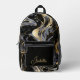Watercolor Liquid Marble Pattern Personalized Name Backpack features a watercolor black and gold watercolor liquid marble pattern. Personalized with your name. Makes a great gift for birthday, Christmas, holidays, Mother's Day and back to school. Perfect for sports, gym, travel and more. Designed by ©2024 Evco Studio www.zazzle.com/store/evcostudio