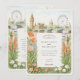 Celebrate your destination wedding in style with this watercolor London wedding invitation, featuring hand-painted illustrations of iconic London landmarks including Big Ben, the London Eye, and a charming red double-decker bus. Delicate florals frame the design for a romantic touch, making it ideal for weddings in the UK or for London-loving couples. Fully customizable with your wedding details. Matching RSVP and details cards available.