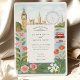 Celebrate your destination wedding in style with this watercolor London wedding invitation, featuring hand-painted illustrations of iconic London landmarks including Big Ben, the London Eye, and a charming red double-decker bus. Delicate florals frame the design for a romantic touch, making it ideal for weddings in the UK or for London-loving couples. Fully customizable with your wedding details. Matching RSVP and details cards available.