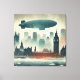 Watercolor London Skyline with Dirigible Canvas Print