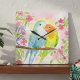 Watercolor Love Birds with Pink Flowers Square Wall Clock