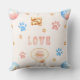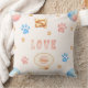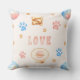 Watercolor "LOVE" Design with Dog Paw Prints Throw Pillow