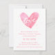 Love and romance in the air, time to celebrate with your loved ones! This elegant Valentine's day party invitation has a heart created using red watercolour with the word love in cursive writing in the middle of it. Tiny splatters of watercolour near the heart. On the reverse is slanted white stripes pattern over a watercolour texture. Add your valentines day party details in the space provided.
