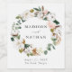 Elegant, floral wedding wine labels featuring your names surrounded by a floral wreath of white watercolor magnolias, blush pink roses, cotton blooms & green leaves. Your wedding date and city/state is displayed below. Design coordinates with our Watercolor Magnolias wedding collection.