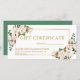 Modern Elegant Watercolor Floral Business Gift Certificate includes magnolias, pink roses, botanical greenery and eucalyptus leaves - Gold Frame and Gold Text, Stylish Green Back