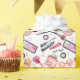 This design features assorted beauty care tools in a soft watercolor pattern.