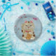 Watercolor Maneki-neko cat under flowering sakura Paper Plate