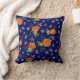 Watercolor Marigold Borage Flowers Navy Blue Throw Pillow